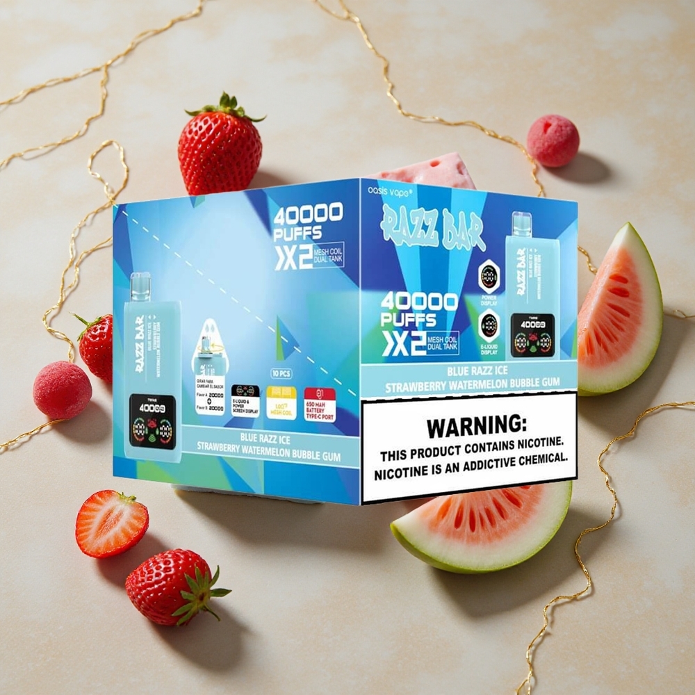 Razz Bar 40000 Puffs Elektromos Cigit Képernyős Kijelző Kék Ribizli Jég-Eper Görögdinnye Buborék Rágó