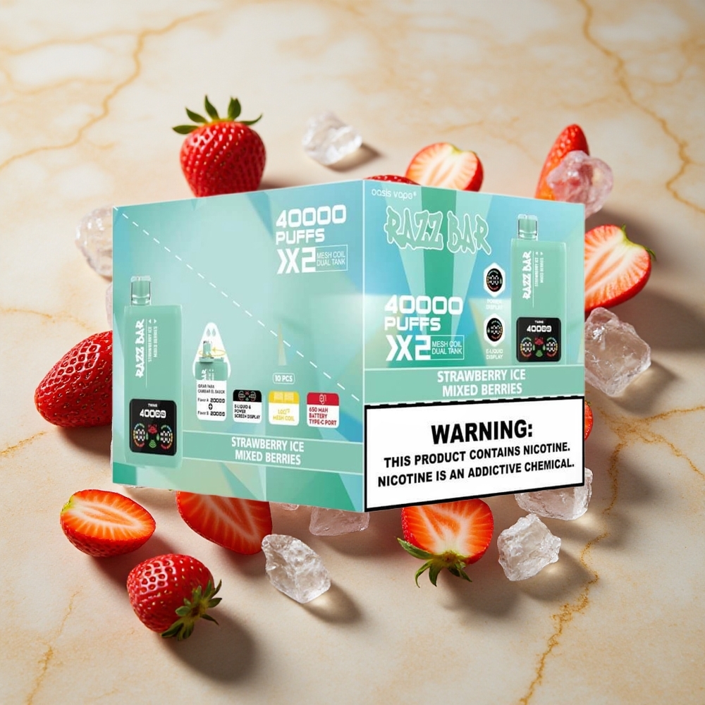 Razz Bar 40000 Puffs Epezdohányzó Eperjég_Kevert Bogyómesh Tekercs